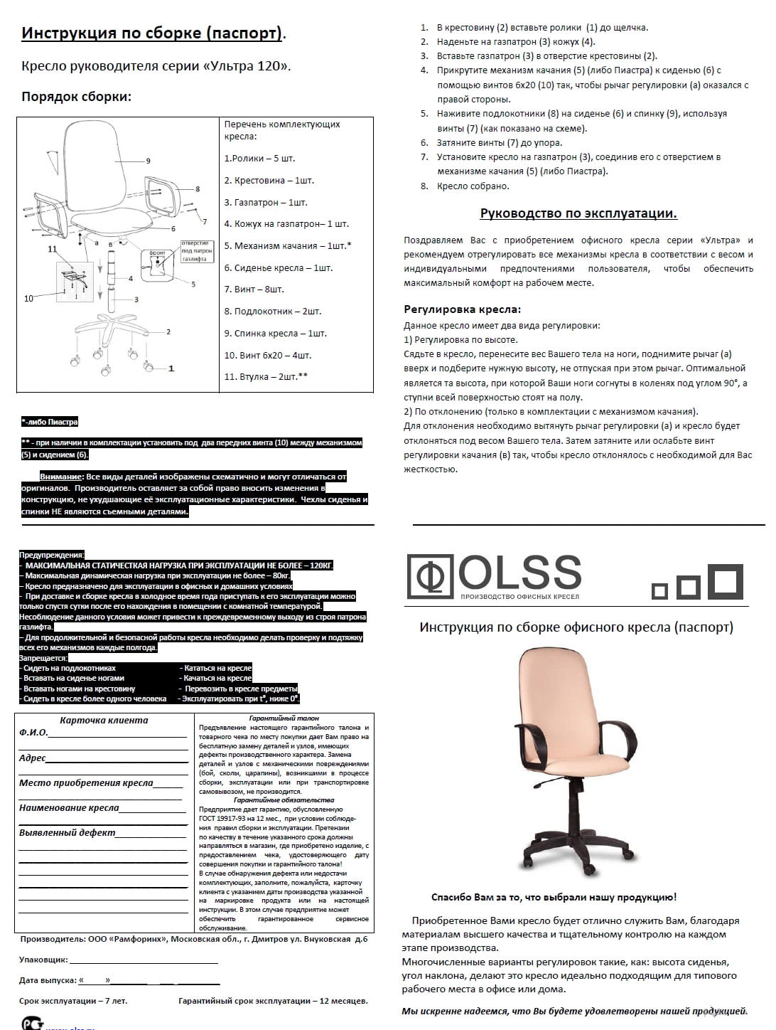 | Максимальная нагрузка (кг) | 120 |