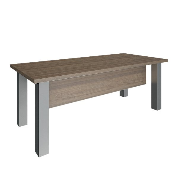 Стол выполнен из ЛДСП толщиной 36 мм., производство "Kronospan" (Россия). Царга стола - ЛДСП толщиной 18 мм. Кромка толщиной 2 мм. (пр-во Германия). Опоры стола: металлические, квадратного сечения 100х100 мм, диапазон регулировки до 15 мм.