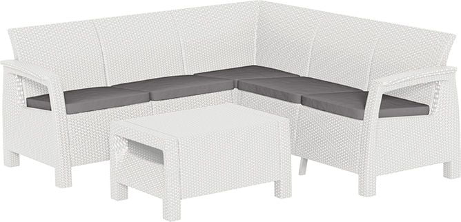 Удобный комплект мебели из искусственного ротанга производства фирмы KETER Group. Широкий диван позволяет поместится большому количеству людей, а высокие спинки мебели создают прекрасные условия для отдыха на открытом воздухе.